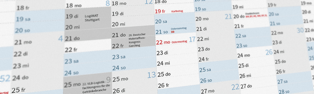Sichern Sie sich bis zum 24. Oktober 2022 Ihren kostenfreien Wandkalender für das Jahr 2023 mit den Terminen für Veranstaltungen innerhalb Deutschlands rund um SAP-Lösungen und Logistik!